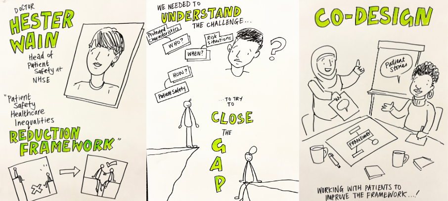 - Patient Safety Healthcare Inequalities Reduction Framework, presented by NHSE’s Dr Hester Wain, outlining practical steps for reducing disparities in care.