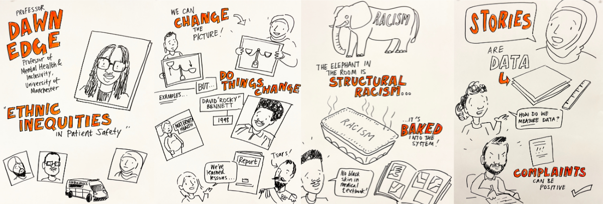 - Keynote by Prof Dawn Edge, Professor of Mental Health and Inclusivity at the University of Manchester – Ethnic inequities in patient safety: addressing structural barriers